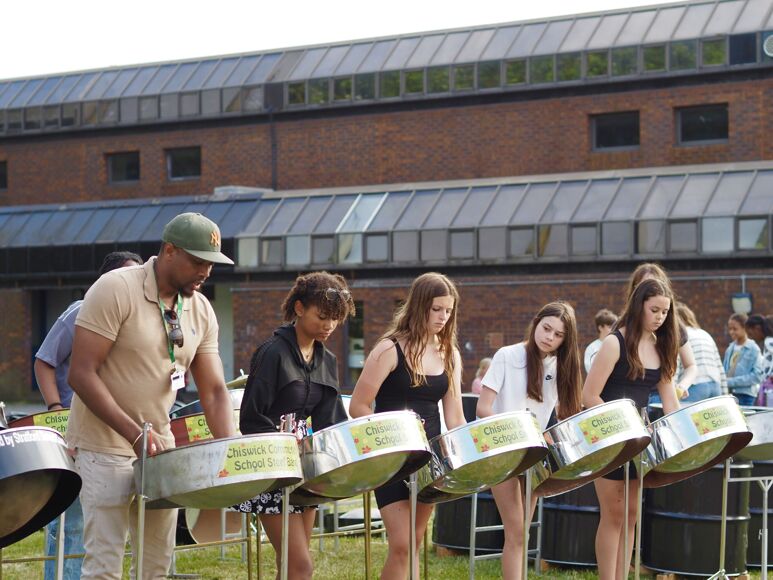 Chiswick Steel Band is one of our most cherished groups. No experience is needed whatsoever, only commitment to learn something new. They have recently learnt songs from Ed Sheeran, Imagine Dragons and Justin Timberlake. The Steel Band is in much demand, having performed at Heathrow Terminal 5, Chiswick High Road, Brentford Stadium as well as many more schools and pubs. For 2024-25, the Y9+ band rehearses on Mondays, the Y8 band rehearses on Wednesdays, and the Y7 band rehearses on Tuesdays, all at 3:30-4:30pm